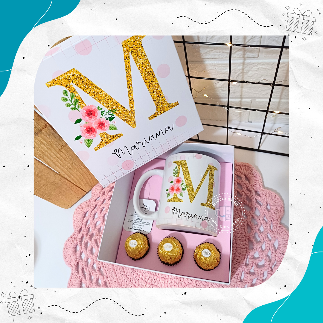 - 1 Caneca - Trio de bombons Ferrero Rocher - Caixa personalizada